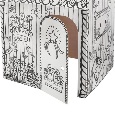 Az XL méretű játszóház ösztönzi a célirányos szerepjátékot, a nyelvi fejlődést és a mesemondást, miközben a gyerekek kifestik, díszítik és személyre szabják a saját terüket.