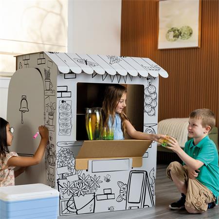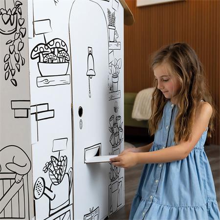 Az XL méretű játszóház ösztönzi a célirányos szerepjátékot, a nyelvi fejlődést és a mesemondást, miközben a gyerekek kifestik, díszítik és személyre szabják a saját terüket.